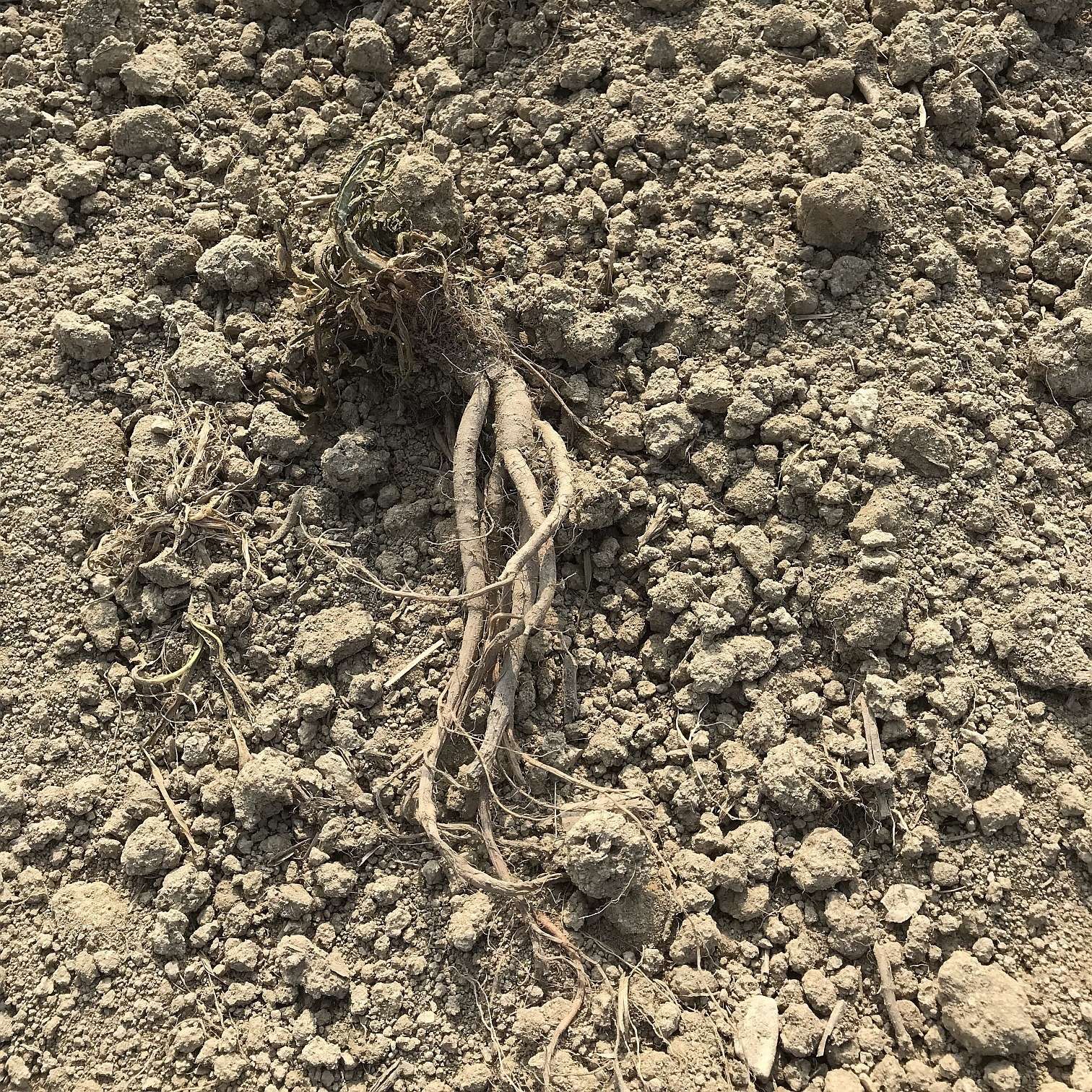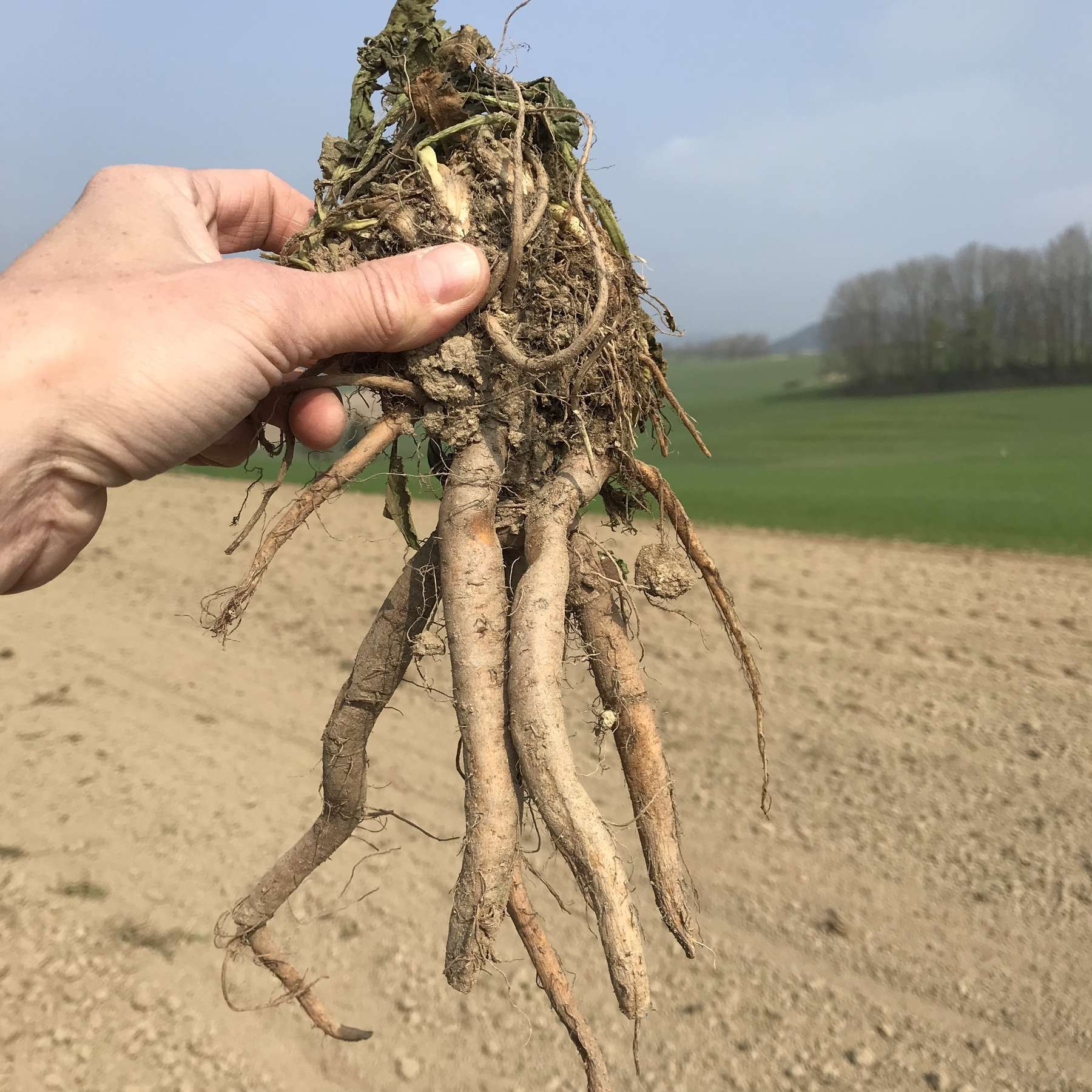 Wurzel nach mechanischer Regulierung mit seichtem Pflug und anschließender Federzinkenegge. © BWSB/Gerstl