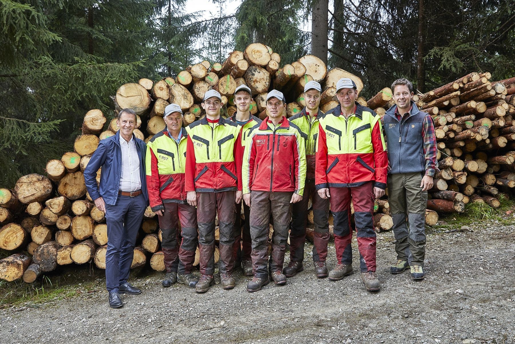 Die Marktgemeinde Hopfgarten hat eigenes Forstpersonal angestellt und bildet auch selbst Lehrlinge aus. Im Bild die Forstarbeiter mit Bgm. Paul Sieberer und Förster Manuel Pichler © Marktgemeinde Hopfgarten i. Bt.