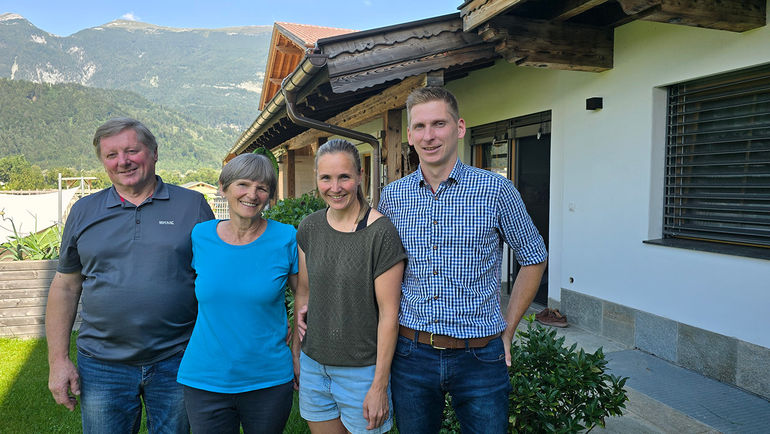 Zwei Generationen am Hof: Walter und Agnes, Sigried und Walter Kreidl. © LK Tirol