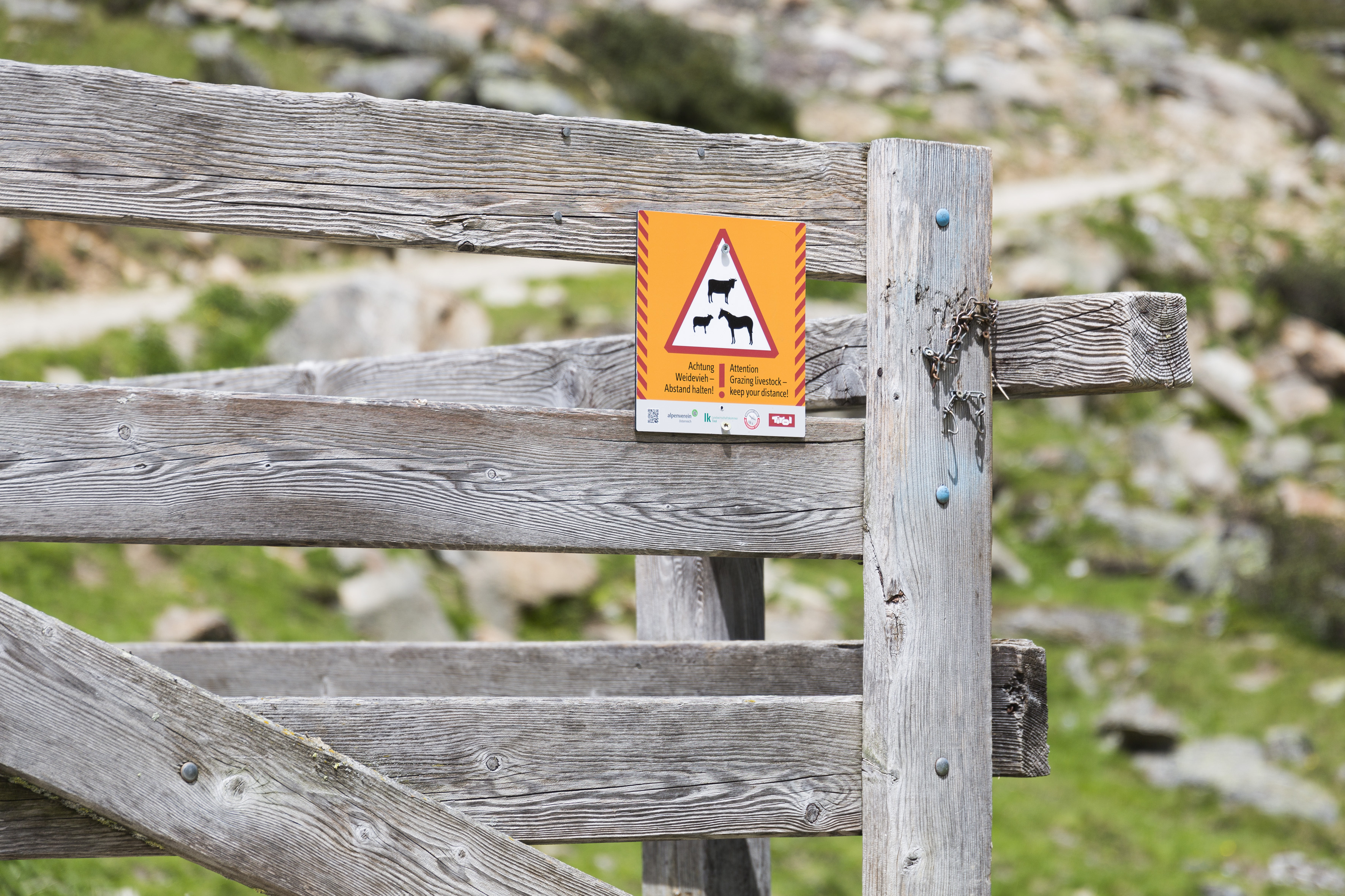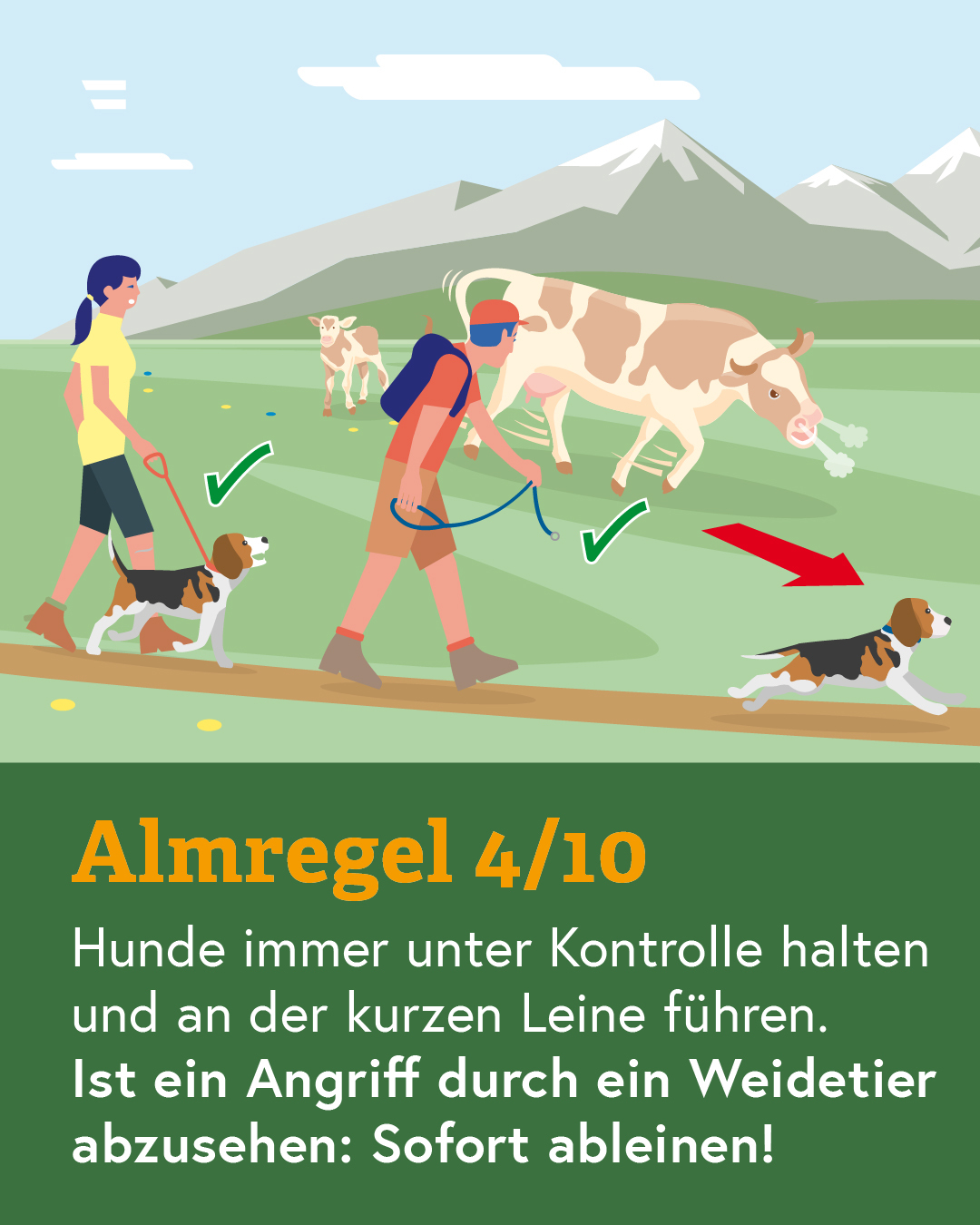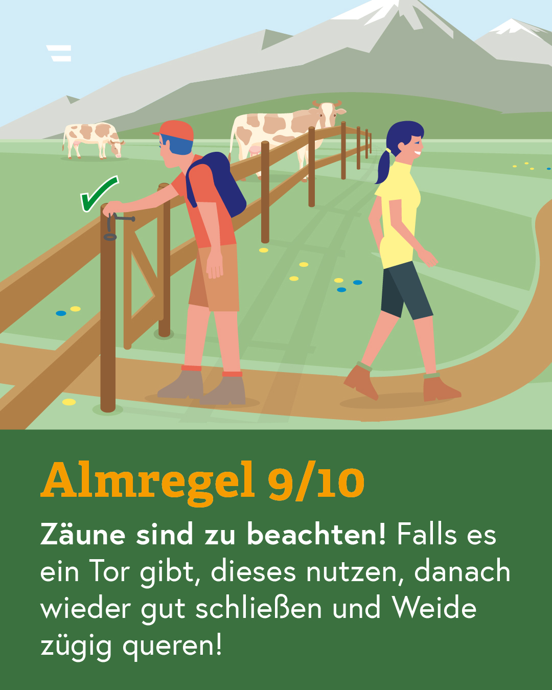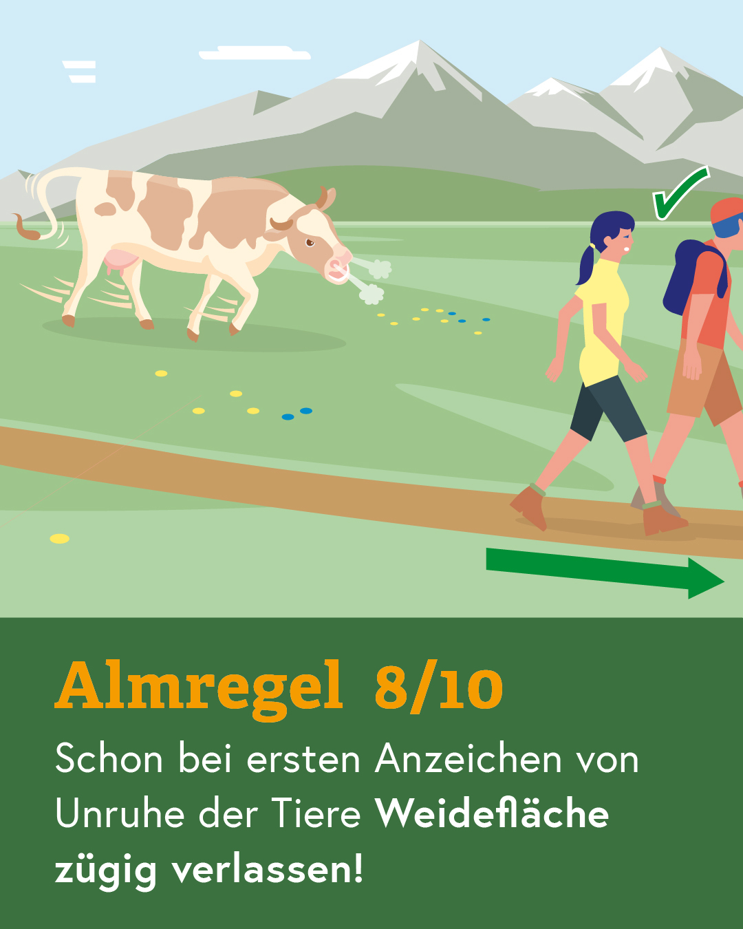 Wanderwege auf Almen und Weiden nicht verlassen!