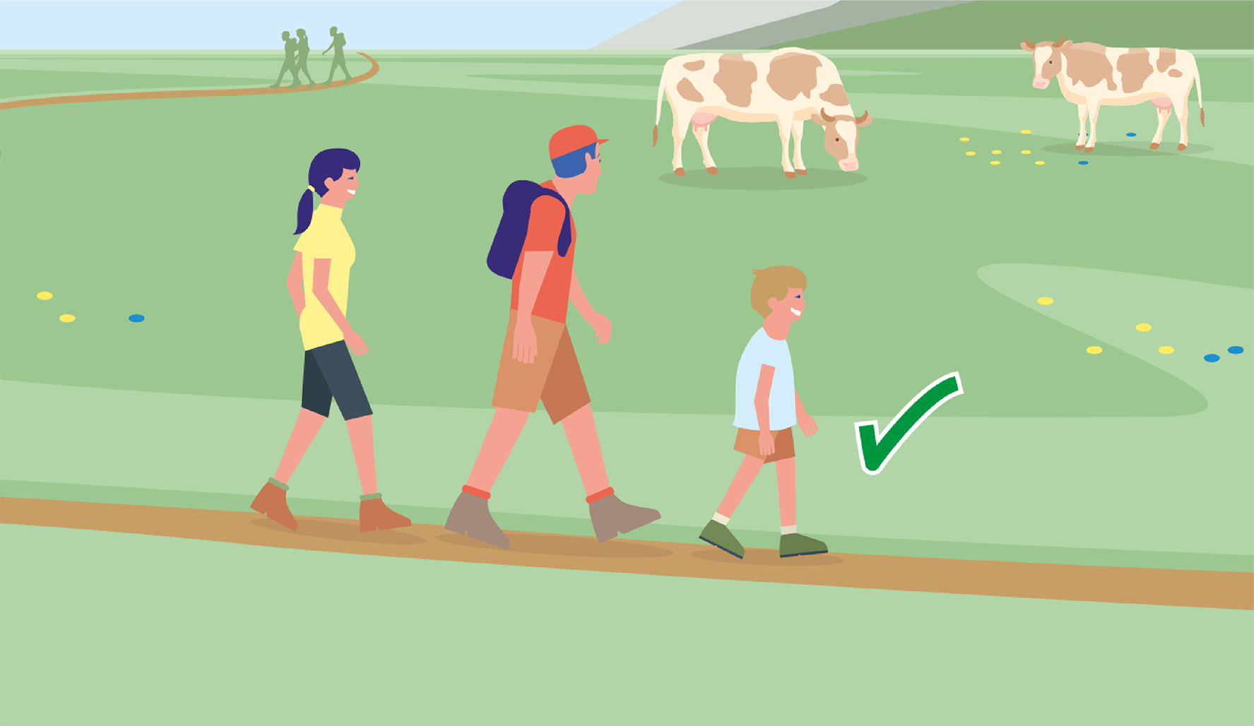 Zäune sind zu beachten! Falls es ein Tor gibt, dieses nutzen, danach wieder gut schließen und Weide zügig queren!