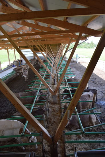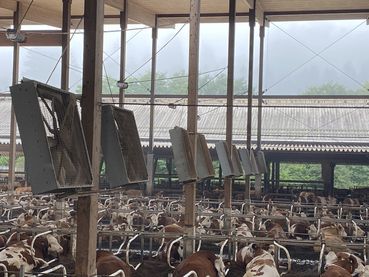 Ein ausreichender Luftwechsel im Stall (Austausch der Luft im Stall gegen Frischluft) muss 365 Tage im Jahr gewährleistet sein. Auch im Winter muss die "schlechte" Stallluft mindestens sechs mal in der Stunde durch Frischluft von draußen ausgetauscht werden, damit das Stallklima (Temperatur, Luftfeuchtigkeit, Schadgase, Keimgehalte und Staub) im Rahmen dessen bleibt, was die Kuh sich wünscht. Dieser Luftwechsel erfolgt in der kühleren Jahreszeit normal über die Öffnungen im Stall (Curtains, Schiebefenster, Spaceboards, Fenster, Tore, usw.). In modernen Ställen, die sehr offen gebaut sind, reicht dies im Normalfall aus, wenn gewährleistet werden kann, dass auch im Winter gelüftet wird. In stark verwinkelten Altgebäuden mit wenig Öffnungen kann es aber sein, dass diese "natürliche" freie Zirkulation nicht ausreicht. Überprüft werden kann der Luftwechsel im Stall sehr einfach mit einer Rauchkerze in Folge einer Beratung von z.B. Berater:innen der Landwirtschaftskammer Oberösterreich (Tel.-Nr.: 050/6902-1650). Stellt man fest, dass der natürliche Luftwechsel nicht ausreicht, müssen technische Zusatzmöglichkeiten (Schlauchlüftungen, Ventilatoren) überlegt werden, um einen ausreichenden Luftwechsel im Stall zu gewährleisten.